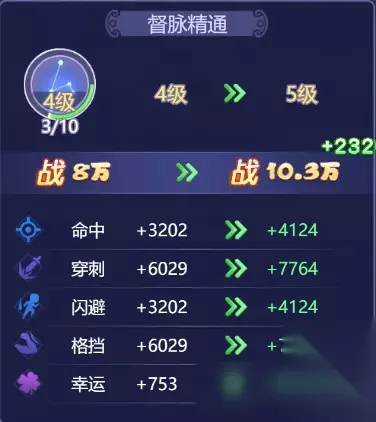 督脉每阶段精通加特殊属性;