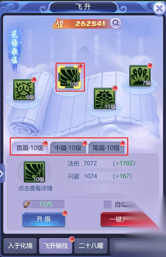 试炼商店中购买(主城-商会-玩法商店-试炼商店) 飞升: 飞升秘笈/飞升天赋 飞升秘技:花语歌谣技能可以大幅提升法伤,首篇-中篇-尾篇提升效果递减。