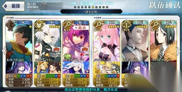 前两面为剑阶飞龙,第三面为两个十万血的飞龙和5万血的齐格飞。飞哥持有防御提升200%,伤害减免90%,受击时敌方np获取率为两倍(对玩家有利),弱化耐性提升20%,开场时np充满。飞龙从第十回合开始每回合发动技能赋予敌方单体即死。 早期没有很多破防技能的情况下这关只能靠固定伤害类技能消耗,也有用小安反伤的,当时老福实装,刚好成了老福体验本。现在只需要携带具有无视防御能力的从者进行输出即可,比如拿破仑黑A等,或者无视防御的礼装阿特拉斯的婴儿 5、战士之母