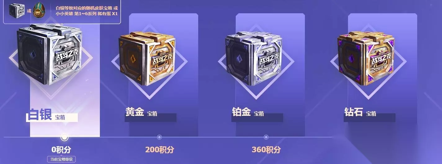 8月20日-9月5日 完成任务升级宝箱 宝箱升级说明:完成任务获取积分为宝箱充能,当积分充能达到指定值时,宝箱获得升级