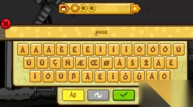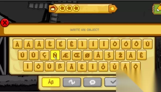 2.然后进入到我们的道具创造界面,道具创造主要是通过你输入相应的英文单词,从而游戏从其道具库中在你的该关卡界面创造出来相应的道具。输入界面玩家无须按照游戏中的乱码键盘输入,直接用你的标准键盘进行英文输入相应的英文即可,输入框下有四个选单。第一个是切换到键盘,第二个则是调出之前输入的英文;第三个对话框图标则是一个比较重要的玄霄。该选单会依据你目前输入的单词,在游戏库中对应的英文相似栏列出列表让你选择。最后一个则是确认输入。