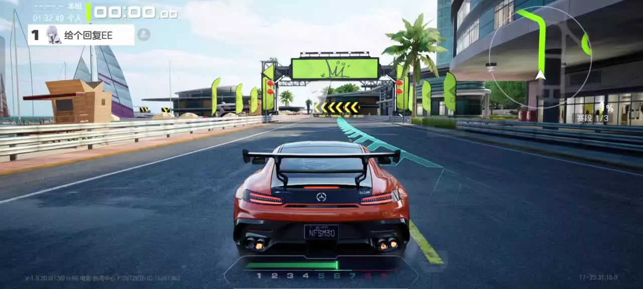 这是《极品飞车:集结》的实战对局画面,玩家驾驶赛车在多赛段赛道竞速,通过惯性漂移、高速氮气等操作,全程保持领先位次,展现了游戏的竞速操作与赛道玩法。
