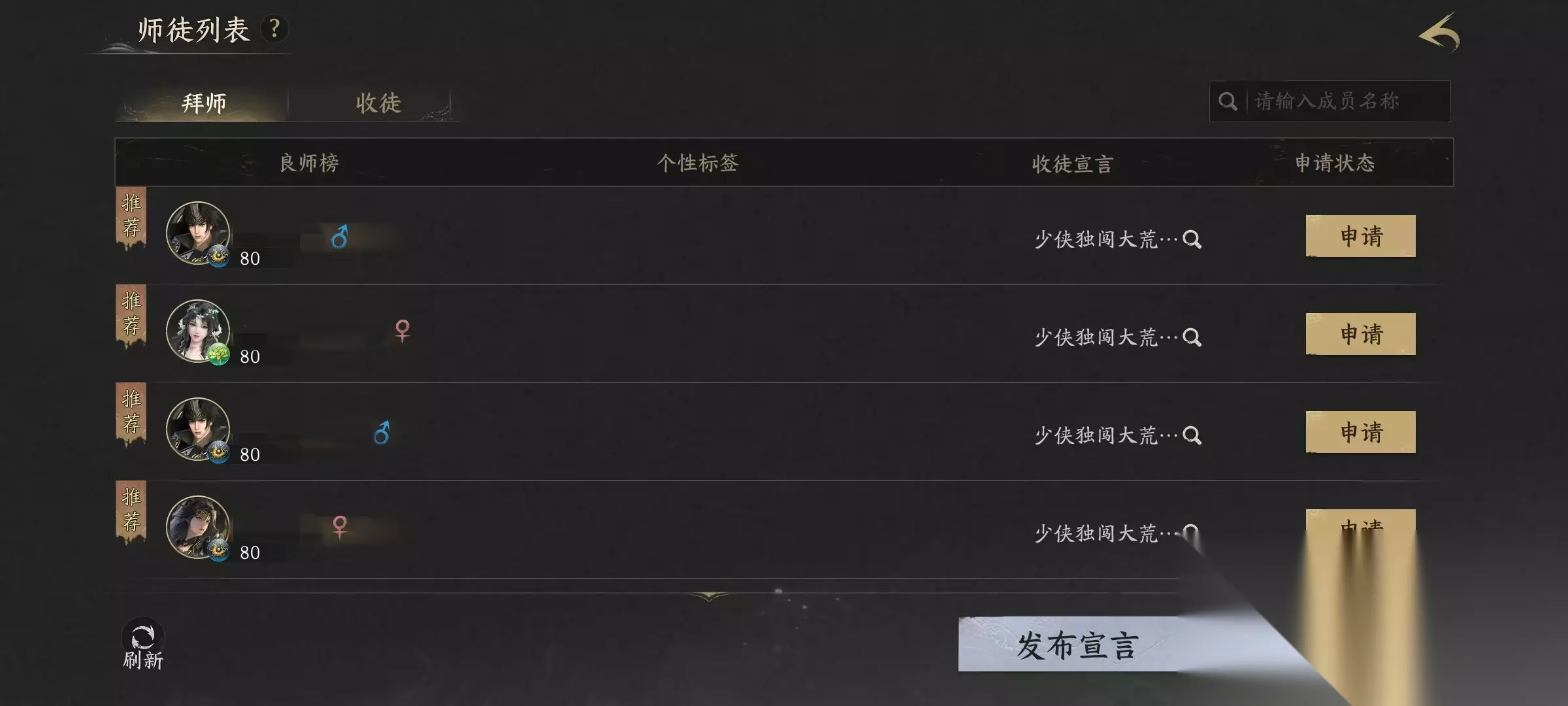 《天下万象》作为一款深度构建社交生态的武侠MMORPG,师徒系统不仅是情感联结的纽带,更是玩家成长路径中不可或缺的核心机制。游戏内设有完善的师徒关系体系,涵盖拜师、授业、传功、出师等完整流程,为新手快速融入大荒世界提供有力支撑,也为资深玩家带来持续的养成反馈与社交价值。