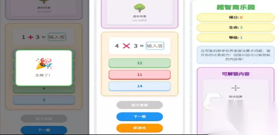 玩游戏不再是成年人的专属,就连孩子们也可亲自体验。此游戏将加减乘除的算数问题全部集结,在神奇的数学世界里,游戏开局后会有不同的题目,比如4×3=几,在下方会呈现出几个不同的答案,其中只有一个是正确的答案,选择了正确答案之后即可提交答案,如果回答正确可解锁更多的丰富内容。 高速下载 普通下载 优先233乐园APP下载 3、《我的色界》
