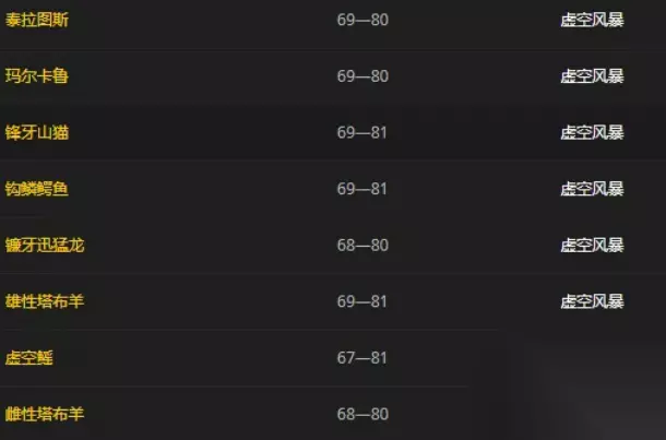 虚空风暴分布: