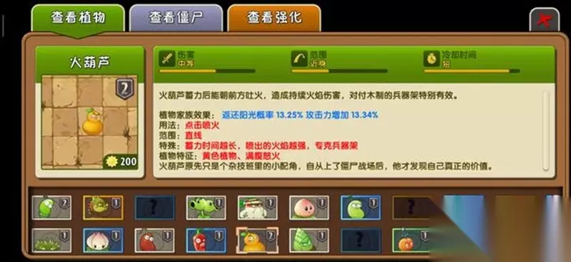 火葫芦的实用价值 火葫芦作为早期解锁的植物,在功夫世界依然发挥着重要作用。它不仅能够有效对付武器架,还能造成可观的持续伤害。虽然存在冷却时间的限制,但火葫芦的综合性能使其成为通关利器。