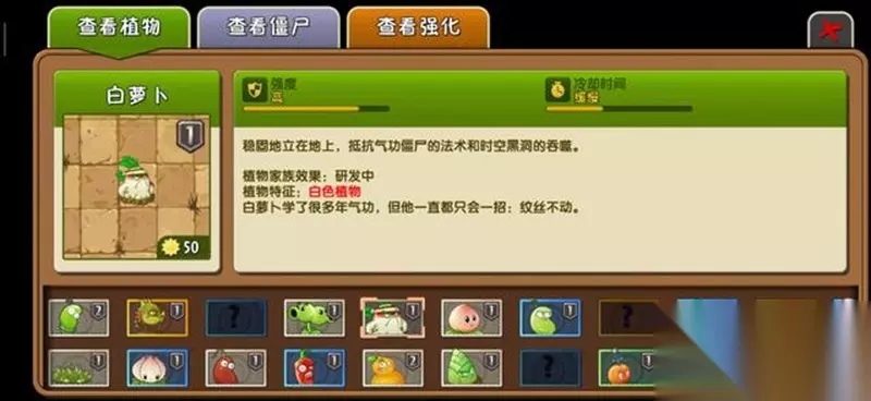 白萝卜的重要性 白萝卜在功夫世界后期关卡中是不可或缺的防御植物。从第6天开始,气功僵尸的出现让白萝卜成为必备选择,它能有效保护其他植物不被气功僵尸的特殊能力影响。缺少白萝卜的防御,整个植物阵型很容易被瓦解。
