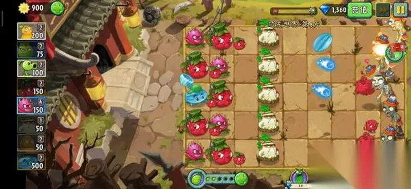 植物大战僵尸2功夫世界关卡的通关策略需要特别注意植物的搭配选择。作为游戏中的重要时空之一,功夫世界有着独特的僵尸类型和地形特点,合理的植物阵容是顺利通关的关键。