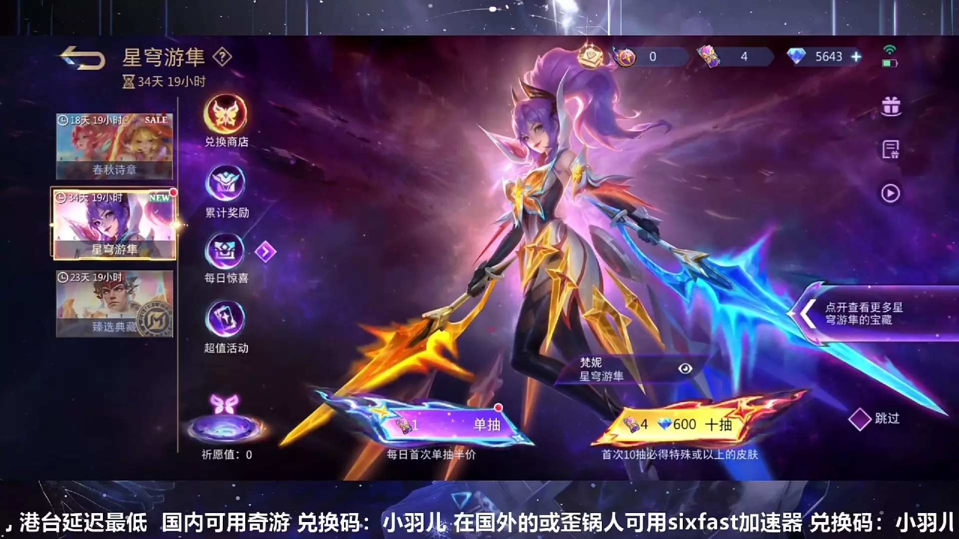 这是《决胜巅峰》的梵妮毕业皮肤抽奖活动介绍,活动有每日单抽半价、首次十连半价等福利,首次10抽必得稀有或以上皮肤,该皮肤也可在兑换商店用1600代币兑换。