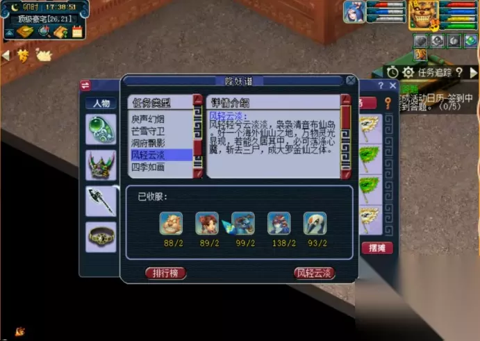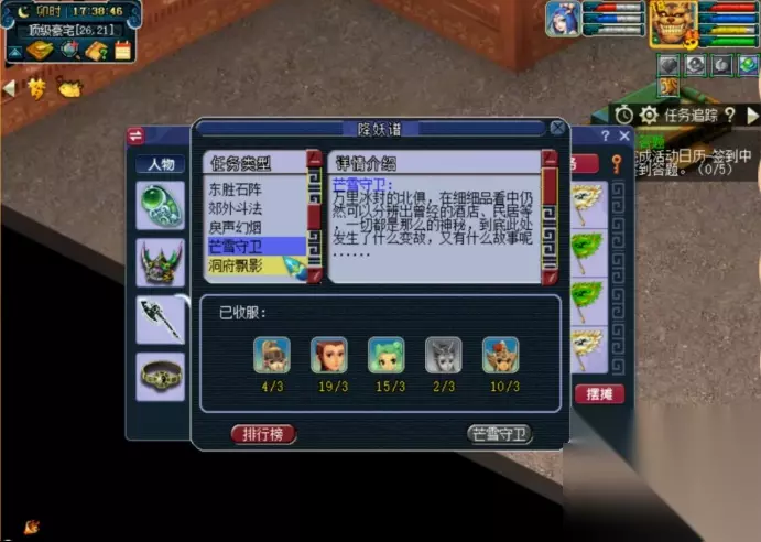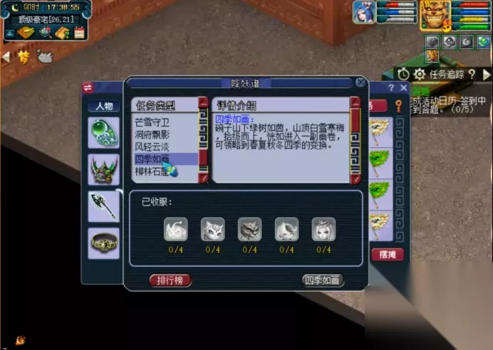 讲封妖后续之前不得不聊聊封妖这件事儿。 每天100妖曾经是很多五开热衷的项目,早些时候封妖也不扣三界,不但给钱,还有几率掉环装、宝石、五宝、兽决啥的,封妖那是真的香,特别是变异妖,杀1只每个号有1W左右的现金,掉80环的概率也很大,后来改了,既要三界,给东西的概率也小了很多,100个妖只给三四个环装也不是不可能。现如今如果不是为了后续,还有人会去封妖吗? 这里为了照顾新手朋友,东山稍微科普一下啥叫“封妖后续”? 其实很简单,去罗道人那买本“降妖谱”,右键打开一看便知。