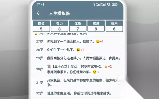 玩家将身为一国之君全面掌控帝国命脉,既要审时度势处理朝堂上暗流涌动的权力斗争,又要统筹规划国家财政与民生建设,从微妙的朝臣关系到边境战事的调兵遣将都需要运筹帷幄,每一个行政指令都可能引发意想不到的连锁反应,无论是推行变法还是征讨叛乱,都需要在权衡利弊后做出最明智的抉择,稍有失误便可能导致民怨沸腾甚至王朝倾覆。 高速下载 普通下载 优先233乐园APP下载 5、《人生》