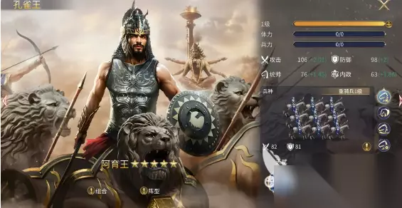万王之王:这是重骑兵的天花板英雄,一级有110点攻击,还有101点防御属性。搭配友方支援技能,如果周围有友军时,那就可以带来30%的减伤。在升满之后就可以直接提升到57%。作为城市招募,马上就可以刷到的五星英雄很容易满红进化。不管是正面冲锋还是前排扛伤,都是无可替代的,对于新手来说,这就是一个必练的角色。