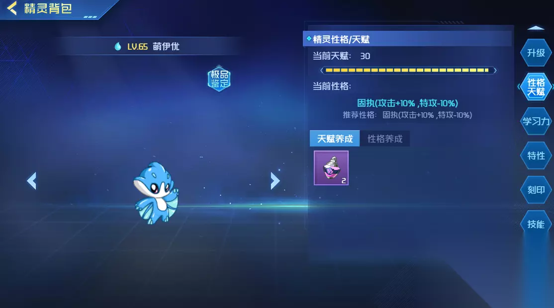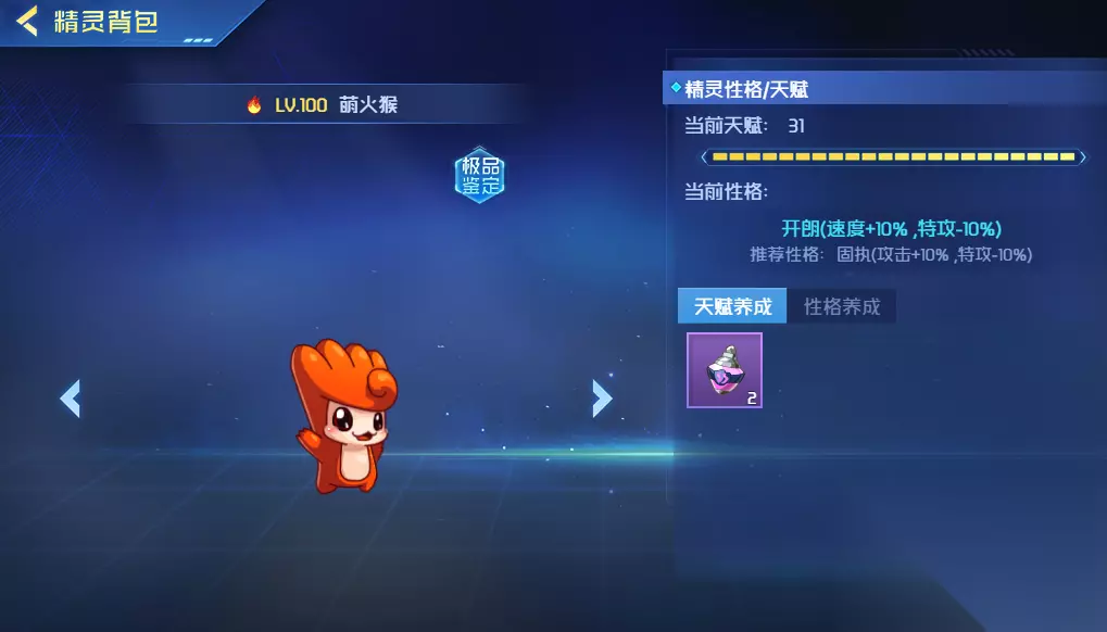 3、性格天赋 萌伊优的性格属于固执,加10%的攻击力,不过特攻会减少10%,你可以将自己积累的学习力分配到不同属性上面。一般更建议加到攻击以及速度上,因为这样能够在发起进攻并快速进行移动。如果天赋点变高的话,相应的属性也会增加。