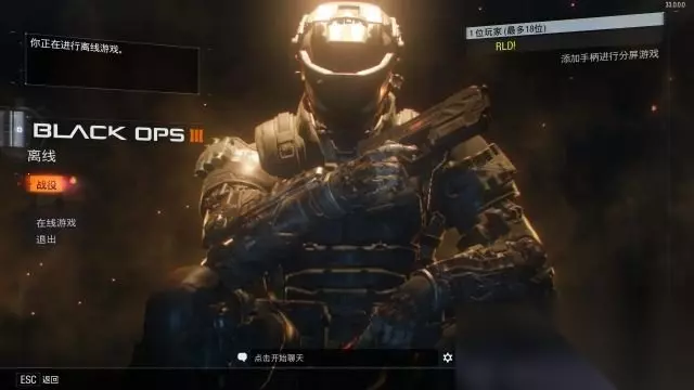 首页菜单 在线状态:在选项最顶方会显示出你当前是出现连线状态或者是离线状态。 火力小队:屏幕右上方会显示出你所在火力小队的人数,最多有18位。开启一个手柄可以进行分屏游戏。 菜单:按M键,打开控制、视讯、音频的设置菜单。 战役:进行战役模式,可以选择新兵、一般、困难、老兵、真实难度进行游戏。 跑酷:类似于《镜之边缘》、《泰坦陨落》的跑酷对战模式。 在线模式:进行团队死斗、抢点、跑酷等多种对战模式。 退出:退出游戏返回到windows桌面。