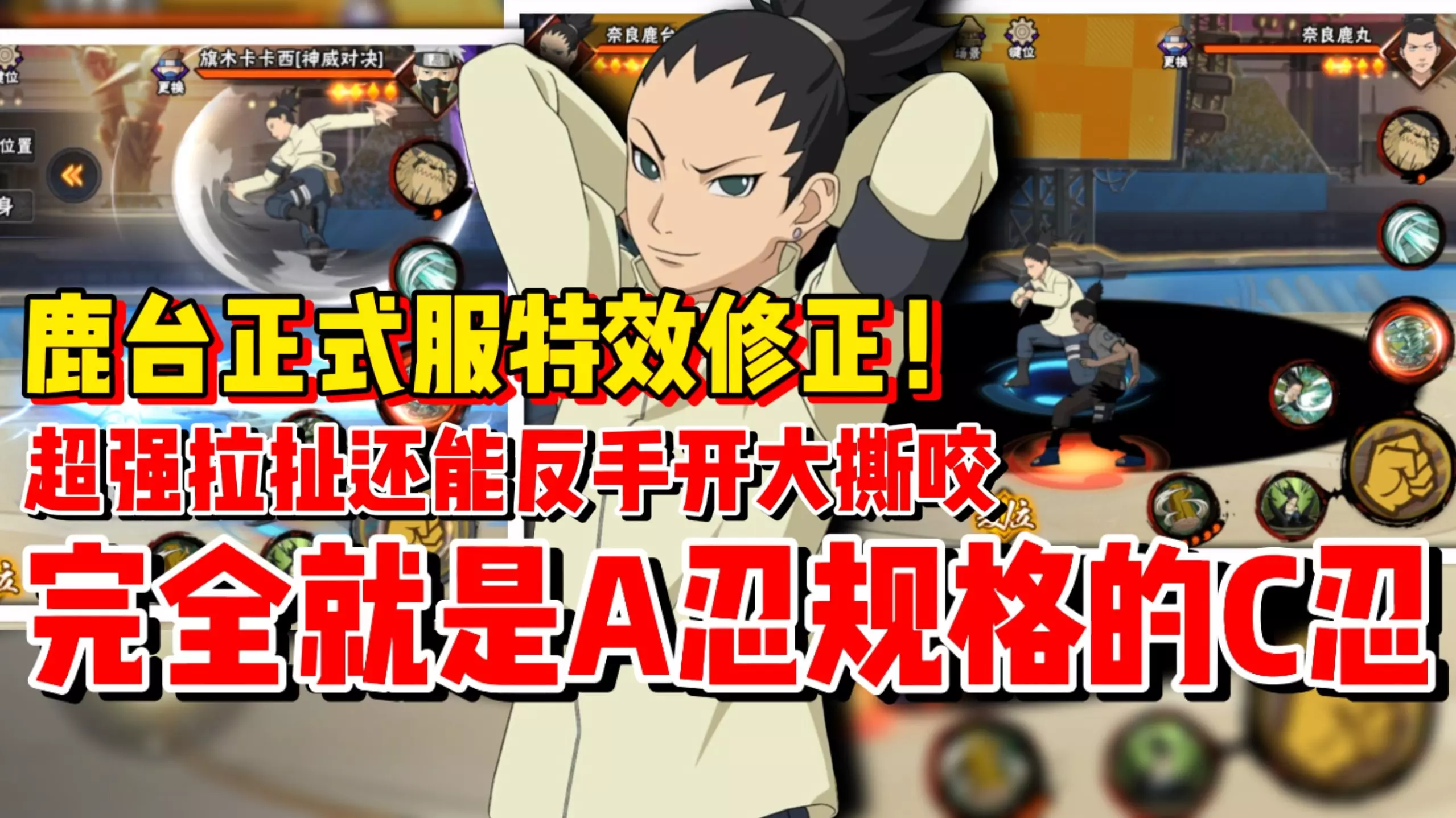这是火影忍者手游的新C忍奈良鹿台教学内容,展示了他在对战中卡替、拉扯、控场以及反手放大招的操作,这个博人传忍者的实战打法十分刁钻。