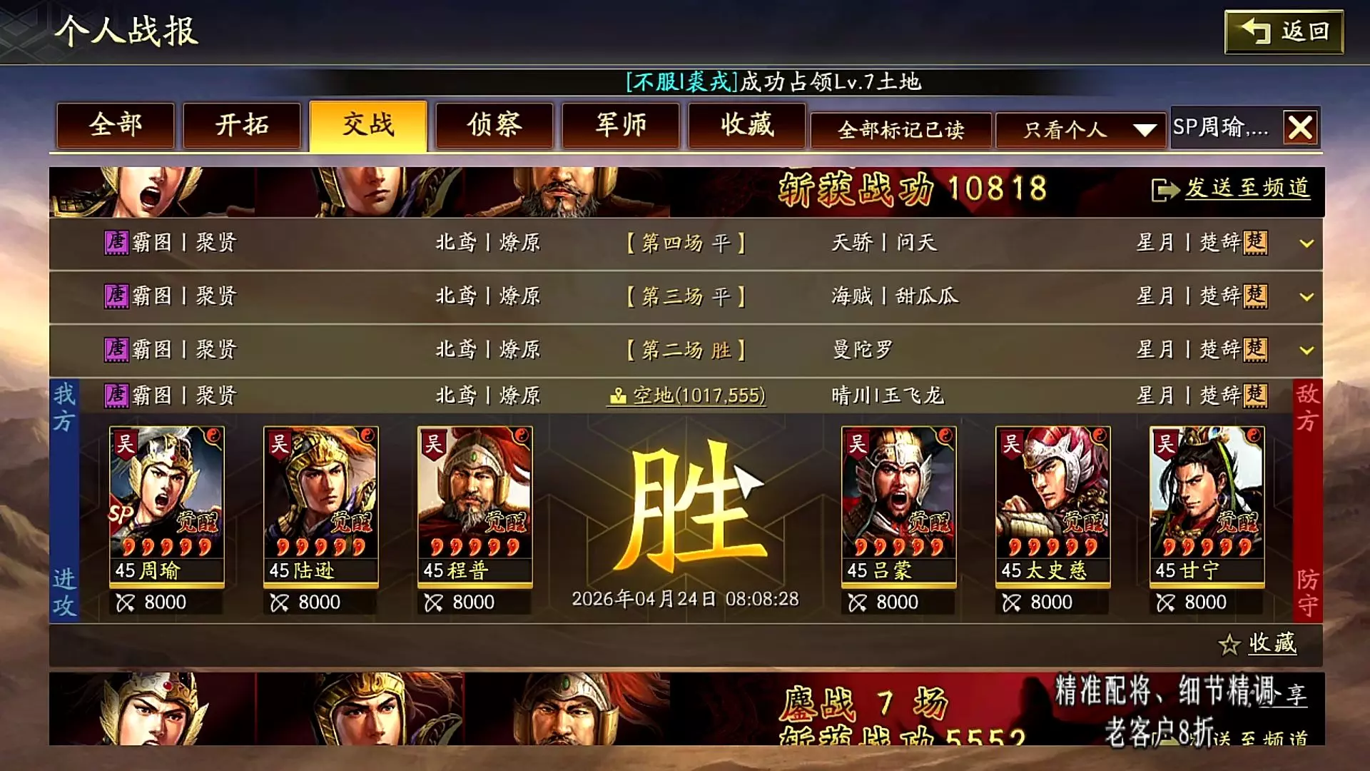 说是零氪,实际上是花了张月卡买来的,因为要自己跑个零氪孙权出来太难了~~ 这个区依旧是定个十万战功的小目标,估计打完要在20多天后,那时候4777服也出来了,可…