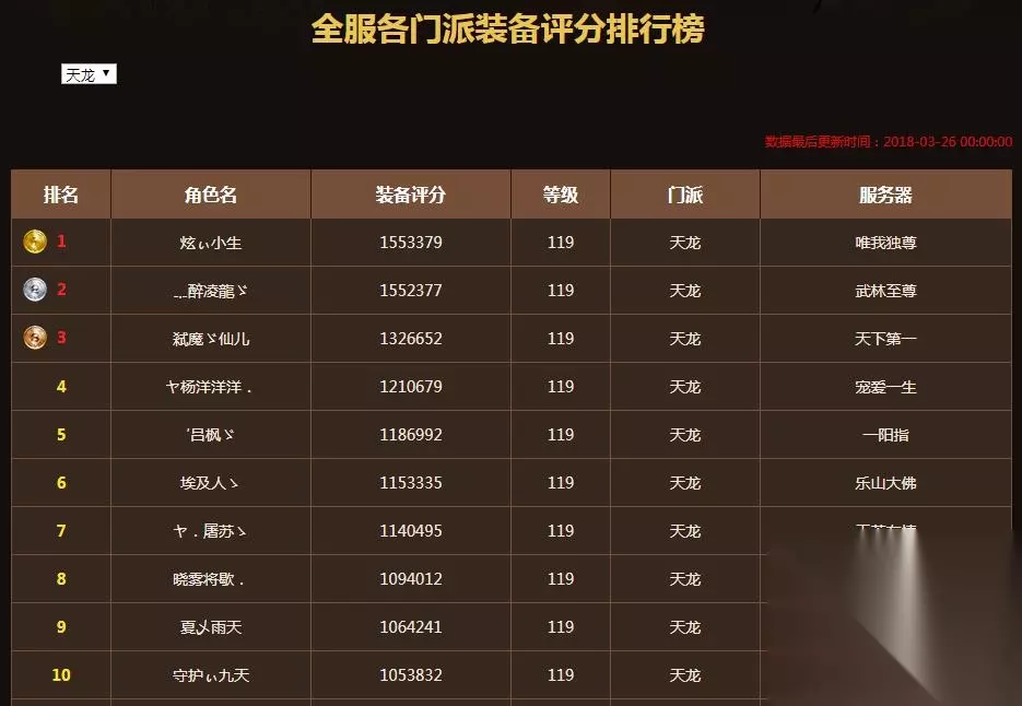 天龙榜第一人是玄小生,同样来自【唯我独尊】服务器。这个账号原来是拉风葛天龙。 当时,还有天龙一姐仙儿。