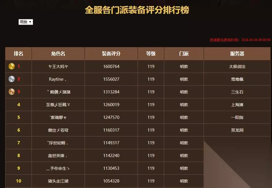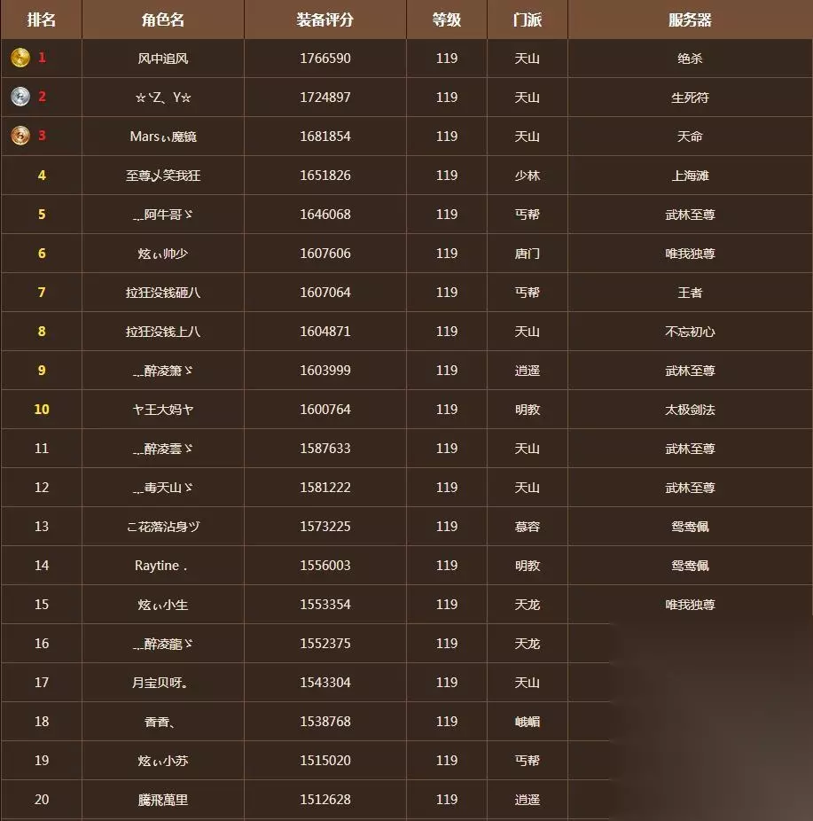 自从转入宗门之后,天龙江湖各大宗门的掌门更换频繁。那么在转入宗门之前,各大宗门的十大掌门是谁呢? 我们先来看看4年前宗门发布前全服前20的排行榜。我们来看看变化有多大!