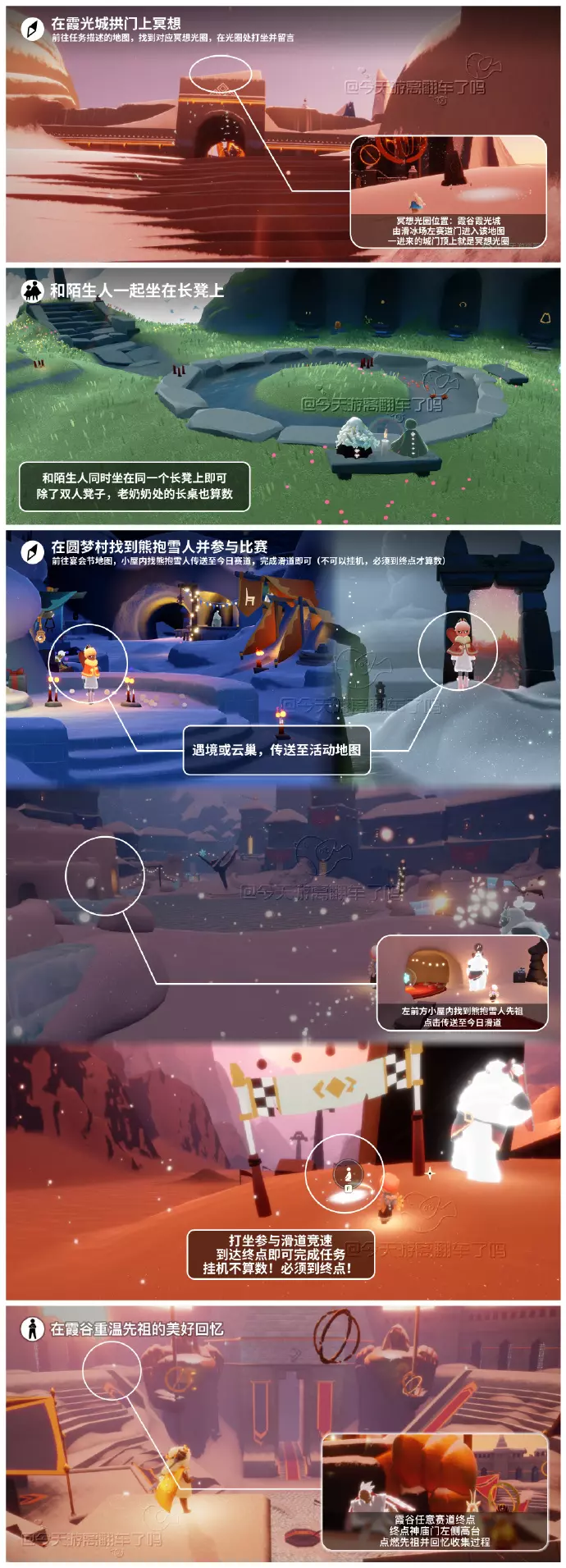 《光遇》游戏中每天的每日任务及大蜡烛的位置都不相同,玩家完成每日任务及收集大蜡烛都可以得到丰厚的兑换奖励,奖励可以用于兑换各种动作及道具,不过很多小伙伴不知道每日任务怎么做,又懒得自己去找大蜡烛的位置,我们汇总了每日任务的完成攻略以及蜡烛位置,一起来看看吧!