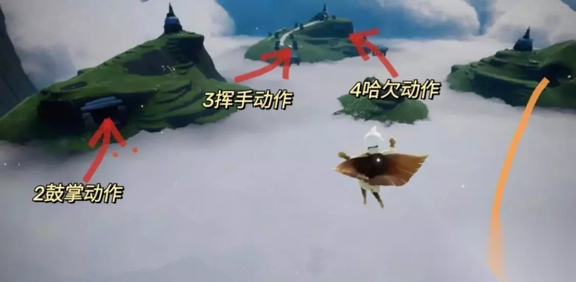 光遇先祖位置攻略 光遇云野挥手先祖位置 一、云野挥手先祖位置 1、首先我们进入云野以后一直往前飞会有个门,穿过门以后我们就到三塔图了。