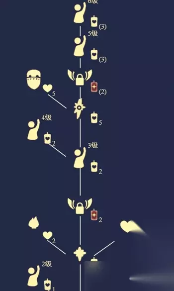 二、云野挥手先祖兑换表 1、呆毛头发:兑换需要2颗爱心。 2、指甲盖面罩:兑换需要5颗爱心。 3、随机魔法:兑换需要6根白蜡烛。 4、永久光翼:兑换需要4根红蜡烛。 5、招手动作:升级需要12根白蜡烛。 6、兑换总计:需要20根白蜡烛,4根红蜡烛,7颗爱心。