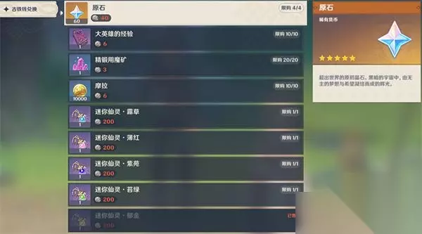 2、原石; 3、天赋培养素材; 4、武器突破素材; 5、大英雄的经验; 6、精锻用魔矿; 7、摩拉。