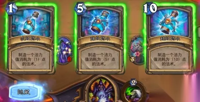 神秘羊毛:随机使一个敌方随从变形成为1/1的绵羊(5费10费药水才有) 超级药水(10费)