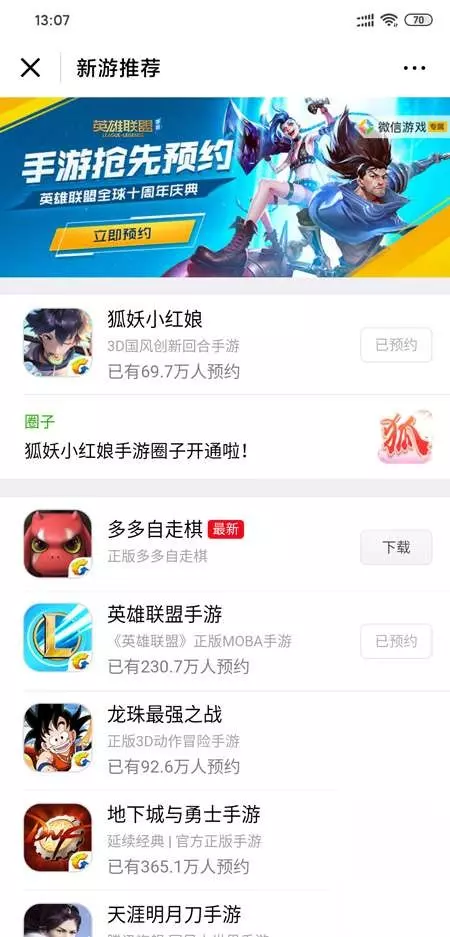 英雄联盟手游已经正式开启预约了,这款游戏是根据LOL正版改编的手机游戏大作,这里为各位小伙伴带来预约地址,还不知道在哪里预约的小伙伴可以参考一下哦。 1.微信预约 打开微信APP,在【我】-【游戏】-【新游】栏目中找到“英雄联盟手游”点击预约即可获得预约礼包,并在游戏上线时获得提醒;