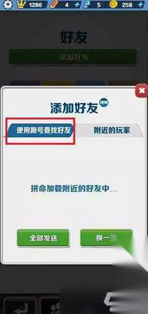 3、随后玩家需要在其中点击【使用跑号查找好友】切换到该界面;