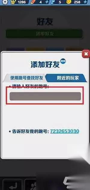 4、接着在此界面就可以输入好友的跑号,就可以搜索到好友;