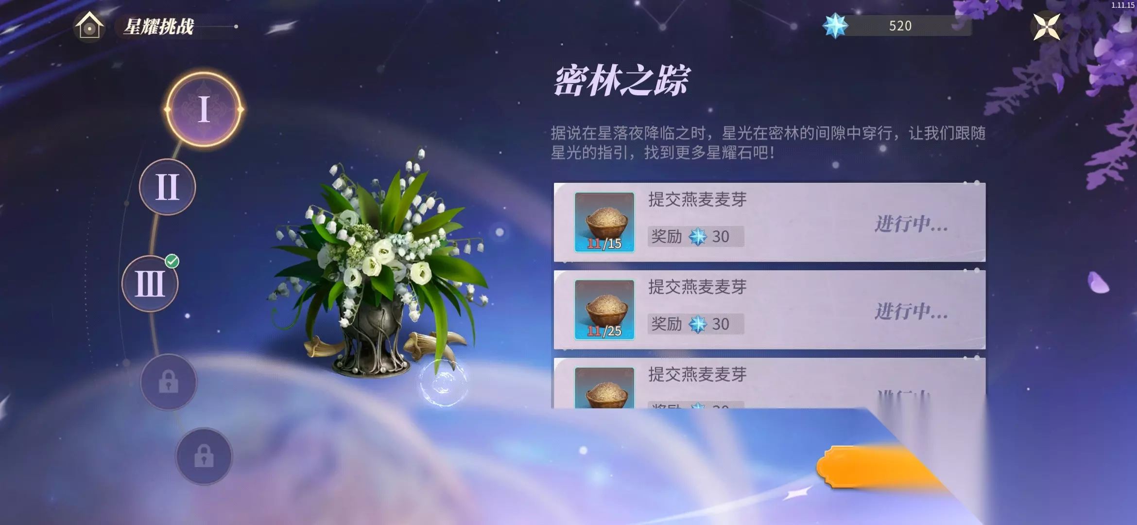 介绍:一共五个环节,按照每个环节的要求提交所需的材料即可获得丰厚的星耀石,星耀石可以在星夜赐福中兑换各种活动物品。玩法简单易懂,就是消耗玩家存储在仓库中的大量原材料、菜品。 五个环节累积可获得的星耀石为: 30×28+50×8=1240 (活动所需的燕麦麦芽可在密林的狩猎、采集获取) 三、星愿炼金