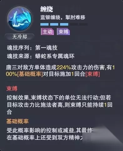 并将有概率对所有魂师产生【束缚】效果!是绝佳的强力控制魂技。