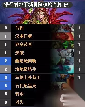 炉石传说狗头人冒险盗贼卡牌全解析 最近炉石传说的狗头人冒险模式挺火的,我们得好好看看盗贼这边的卡牌。新模式里每个职业卡牌都固定,不同职业玩法也不一样。这期我们就来聊聊盗贼的初始套牌,还有怎么玩。 盗贼初始套牌其实挺给力的,各种卡牌搭配起来很有意思。比如背刺、深渊巨蟒、致命药膏这些,都是常用牌。影袭和幽暗城商贩也能快速出牌,海地精猎手和军情七处特工控制场面,石化迅猛龙用来解场很实用。刺杀和消失则是关键控制牌。 盗贼初始套牌(图片来自87G炉石传说专区)