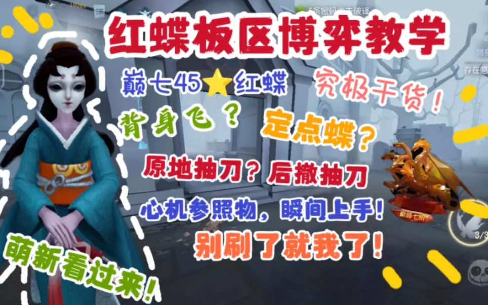 1.首先红蝶没那么吓人只要你会溜看见红蝶就会释然的笑出来 2.蝴蝶开局贴脸? 用蝴蝶赶路说明她追你的时候是没有蝴蝶的这时候你转进高墙就行 3.红蝶放蝶我们就捡,…