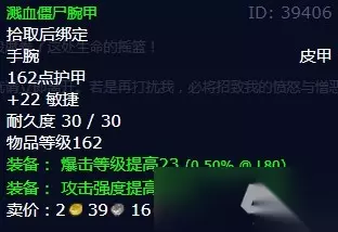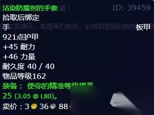 描述 这一切本不该发生的。亡灵大军如风暴般席卷了这处生命的摇篮! 如果你的来意不是铲除巫妖王的爪牙,就请立即离开。若是再打扰我,必将招致我的愤怒与憎恶。 任务奖励 净化尸体束带、溅血僵尸腕甲、骷髅践踏者、沾染防腐剂的手套,四选一