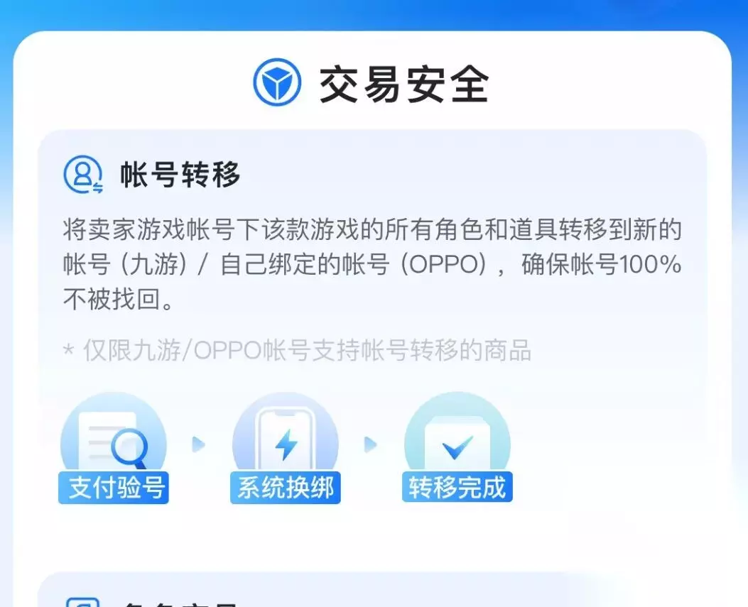 其次,关于安全性方面,平台推出了各项安全保障。平台里面有一个安全购服务,里面详细的讲述了平台中是如何保障用户的交易安全的。首先,支持对某些账号进行迁移服务,保障了这些账号不会被找回的麻烦情况;其次,还支持通过官方渠道和个人渠道对账号信息进行查验,保障了账号的真实可靠。另外,平台还会精选出优质卖家和由平台发货的这类贴心服务。