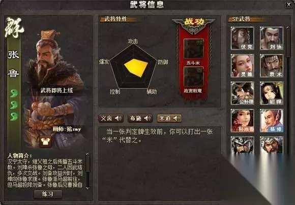 武将姓名 张鲁 体力 3