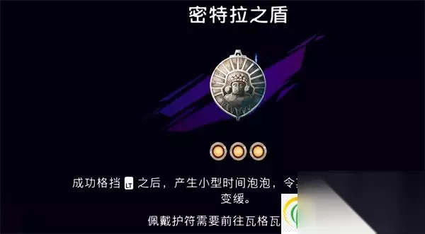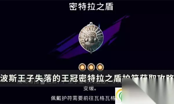 《波斯王子失落的王冠》密特拉之盾护符加成及获取攻略 入门攻略点此查看游戏按键系统装备能力详解 护符推荐点此查看必备护符推荐搭配攻略 护符强化点此查看护符强化解锁攻略 护符购买点此查看废品贩子商店能买的护符 时之晶护符点此查看兵匠获取护符攻略 护符之主获取点此查看护符之主全收集攻略 一、护符加成 密特拉之盾这个护符很强力,能在成功格挡之后,产生小型时间泡泡,令其中所有敌人行动变缓,这可是一个控场神技啊。