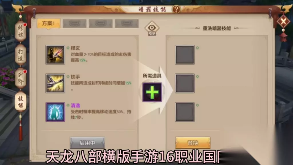 第四种方法是升级到40级。别急,别急。因为按炼时,我已经说过了,在没有达到40级的时候,不要理会技能,因为只有在40级之后才能开启所有三个技能。在40级之后,各位大姐可以看到所有的暗器技能都已经打开了。这个时候,我们可以进行打造。 打造需要玄皓玉,只能通过营养素商城和商会中的商人购买。目前,只有新职业才能使用玄皓玉。 暗器存放在仓库中。第三种方法是在打金时,商人可以提供不绑定的玄皓玉,也可以通过他们购买,100个可以升级。