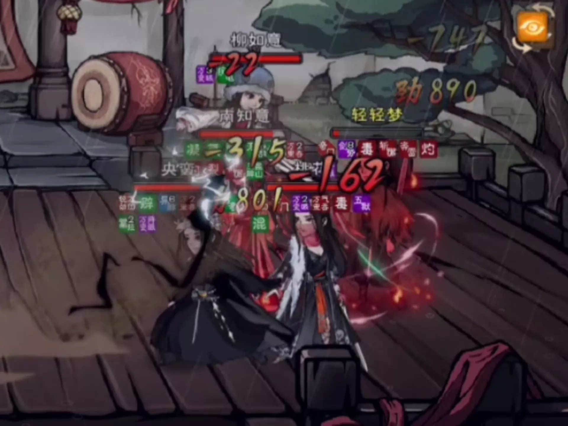 这是《烟雨江湖》的游戏内容分享,玩家表达了对伙伴柳如意的喜爱,展示了柳如意参与霸主斗宴对战的战斗画面,还提及希望官方加大福利、更新更多优质内容。