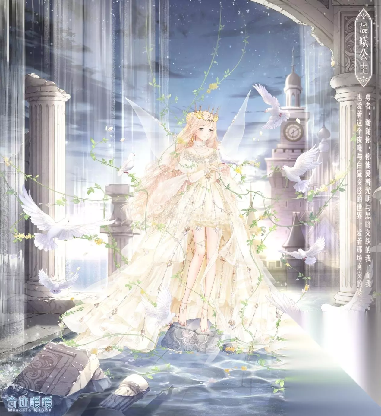 奇迹暖暖永夜国之梦星辰深处梦境黑白由233乐园小编为大家带来,白棋皇后的舞会结束,城堡的大门缓缓打开,而幻夜女王自城堡中走来,梦之精灵如四散的萤火脱出。 “这些都是公主的梦境呀,生活在我的国度,我也必将赠予她无止境的黑夜与梦...” 人们将自己的梦魇归咎于换幻夜女王,认为她是黑暗和邪恶的化身;人们只歌颂赐予爱与阳光的晨曦公主,认为她带来了光明和真理。 但当勇者向女王吐露衷肠,赞美夜色的温柔,就如同歌颂曦光的和煦时,掌管真实之梦的女神,才会降临人间。 ——————晨曦公主 · 梦中晨曦—————— 启明星昭示晨曦将至 如墨的夜色被女王褪去 她披上浮光跃金的白纱 朝霞点染她的裙摆 阳光在她的发梢跃动 人们热情地赞美她 如同在深夜诅咒她 公主走出曦光之中的城堡 她的美丽如同湖泊 宁静而又神秘