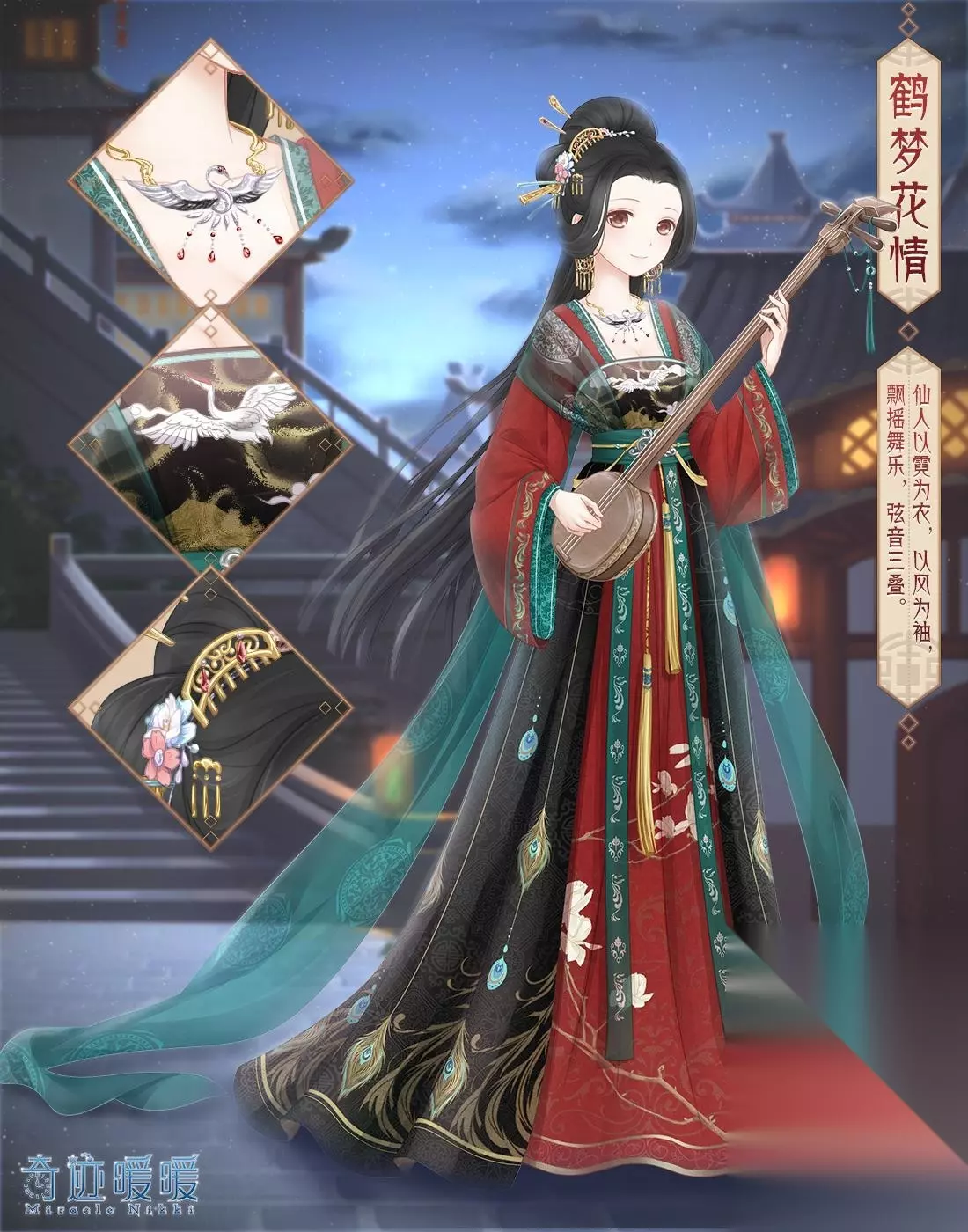 12月02日5:00 — 12月08日23:59期间,大家可以进入梦境星空探索,探索可获得梦之星屑,并随机获得数量不等的钻石、体力或金币~每人每天都有一次免费探索的机会哦~ 除了晨曦公主与幻夜女王外,还有三个绚烂的梦境等着大家唤醒。收集一定数量的梦之星屑,点亮星辰梦路,即可随机唤醒一个公主的梦境并领取对应套装。 ——————鹤梦花情—————— 在梦中,公主来到了海上仙宫 云雾缭绕 中有仙人 竟不知是梦到何处 得闻此间仙乐