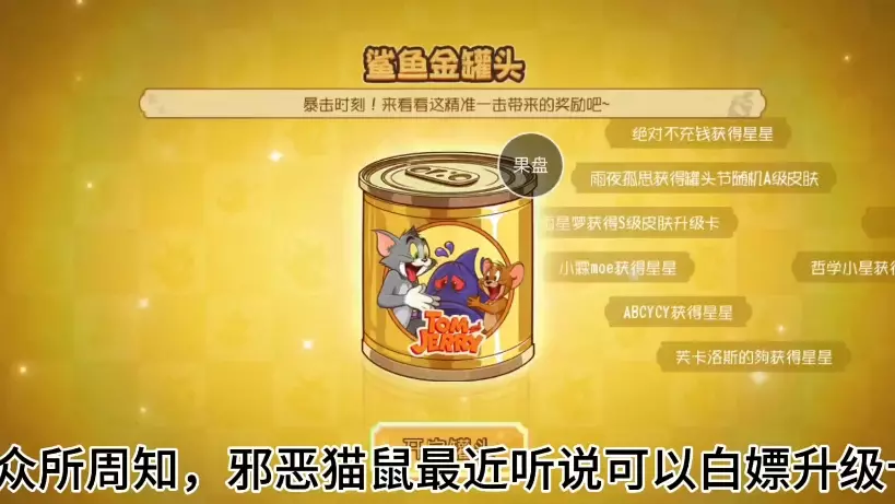 这是《猫和老鼠》的社区抽奖福利帖,介绍了金罐头失踪案活动,参与可100%得S级皮肤升级卡,还透露对局金罐头出S级皮肤升级卡、金羽毛角色的出货率和账号活跃度相关,金羽毛角色不全时随机出,全了就出升级卡。