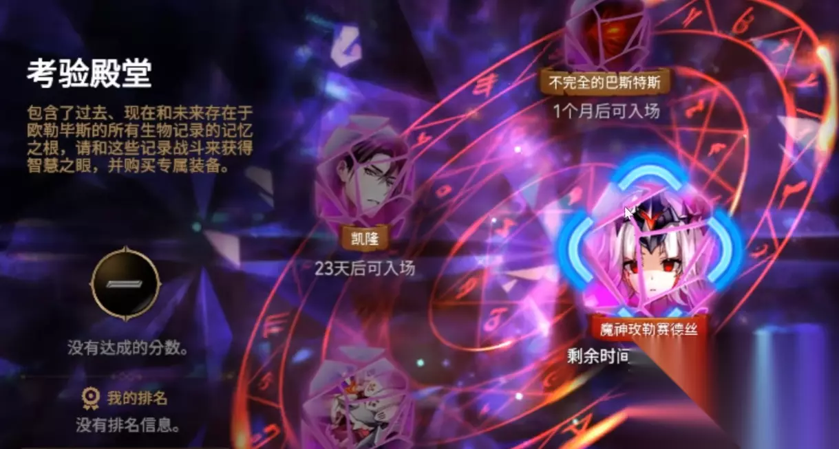 想要获得专属的装备就需要去通过考验殿,因为只有考验殿这个副本可以给与玩家们智慧眼这个货币。考验殿堂是一个周期性的副本。它会不断的进行循环出现。考验殿堂除了可以获得智慧之眼,还可以获得不少英雄的记忆碎片。