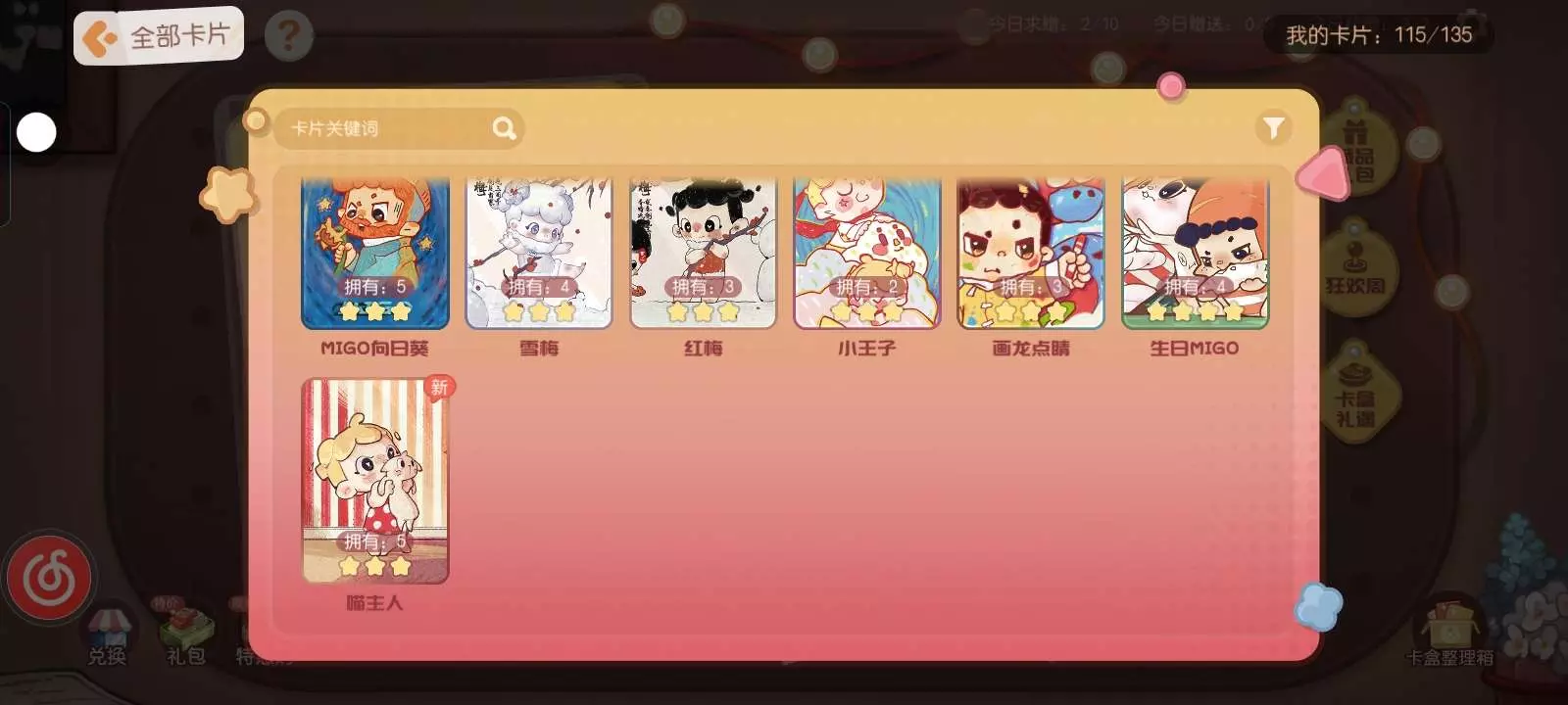 呜呜呜,季卡基本上就剩5星和4星的了,还在考虑要不要丢钻去集߹ᯅ߹