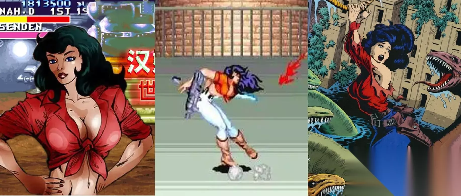 至于《恐龙快打》原本的男女主角——不好意思他们难道不是仅出现在选择界面和结尾动画里的剧情人物吗?尤其是汉娜,明明在网上每一次搜《恐龙快打》结果都是她,什么荡绳的汉娜、受缚的汉娜、各种姿势的汉娜……