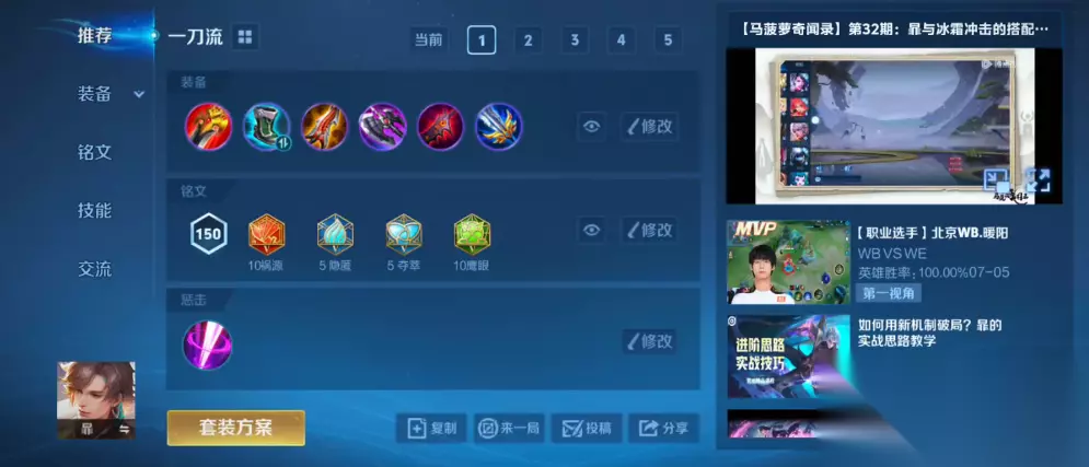 团战思路以后手切入为主,利用墙体观察战局,优先锁定残血或落单的射手法师。暃的身板较脆,全输出装虽伤害爆炸,但容错率低,逆风时可把宗师换成冰痕之握,或者补一件反甲提升生存能力。记住暃的核心是收割而非开团,技能真空期及时撤退,等待下次进场机会。 【小编推荐】专区入口 || 视频站入口 || 体验服申请入口 || 全民竞猜赢好礼 【新英雄爆料】| 司马懿 || 瑶 || 孙策 || 新英雄:囚徒/书圣/瞬 | 【新皮肤爆料】| 李白团战皮肤:敏锐之力new || 诸葛亮团战皮肤:掌控 || 典韦穷奇皮肤 Hot!! | 王者荣耀最新攻略 赛季段位继承表 每日一题 边境突围玩法攻略 体验服爆料