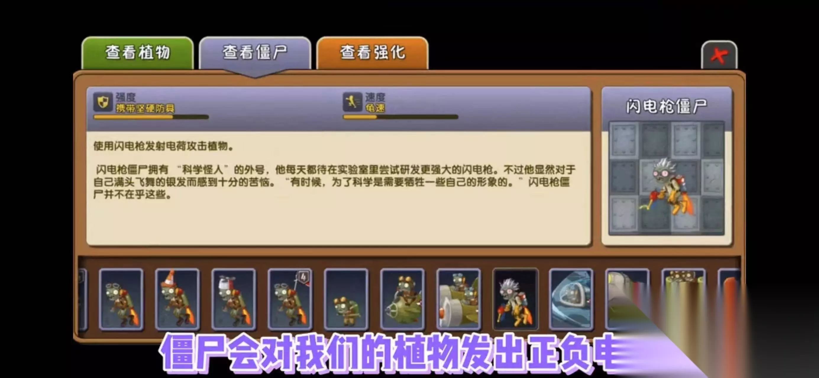2、原因就是这个闪电枪僵尸会对我们的植物发出正负电荷,我们前排的植物同时受到正负电荷影响的时候,这些植物就会以百分比掉血的方式持续的掉血,如果植物的等级越高,那么百分比掉的血也就越多。因此种上低阶的芦笋飞机或者旋转芜菁,再给他们带上橙色药箱以后就能够持续地扛在最前排。