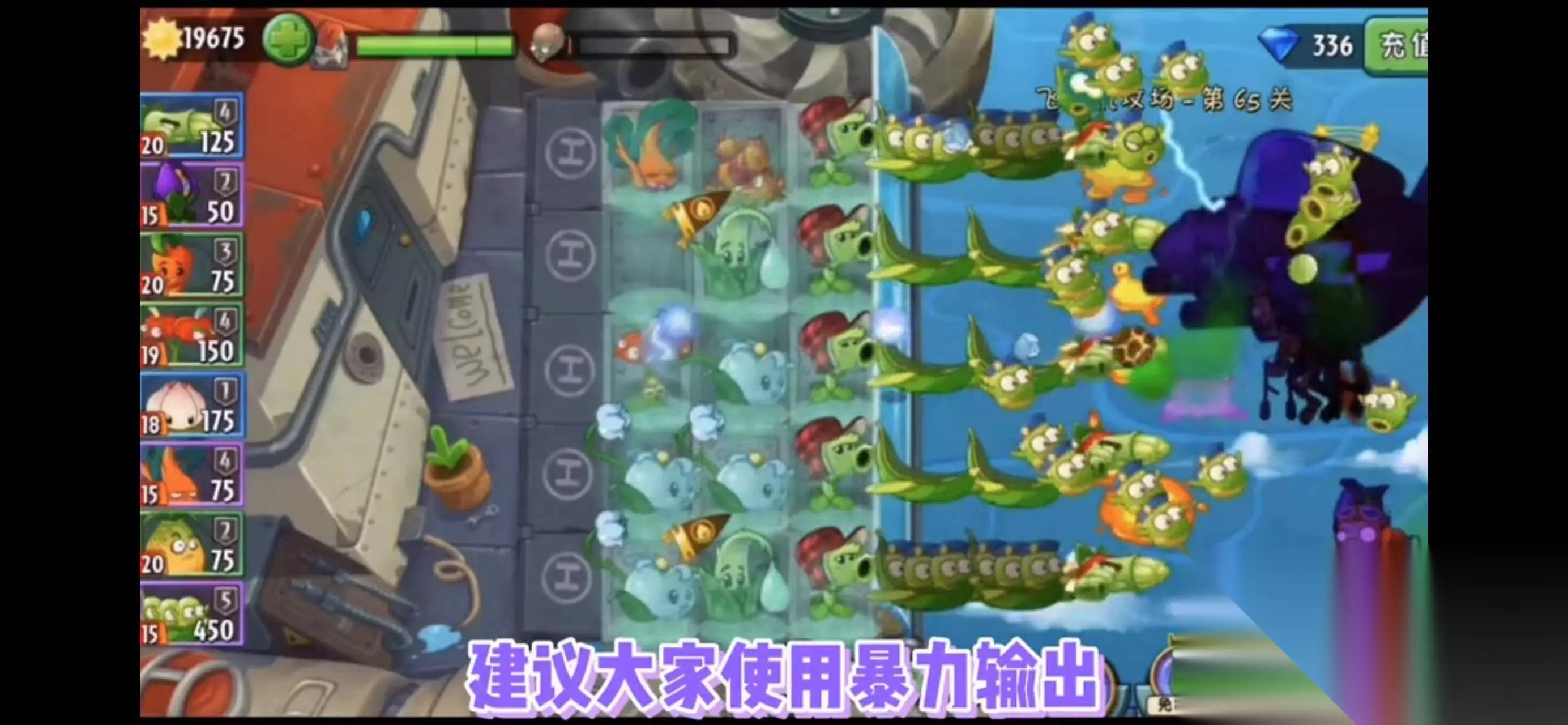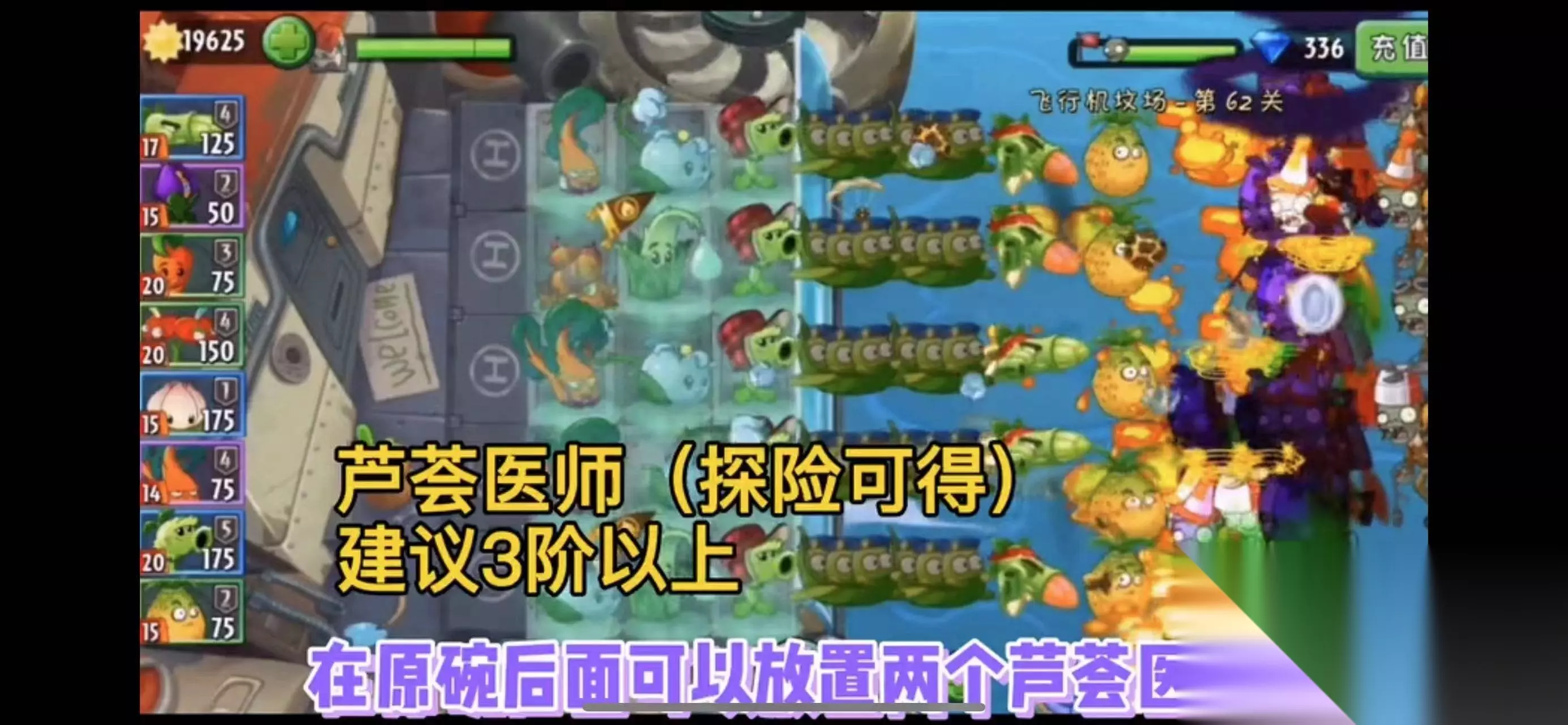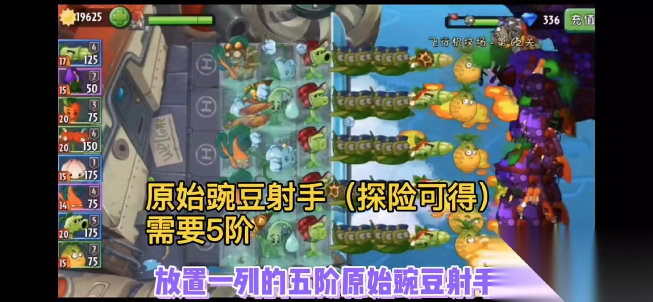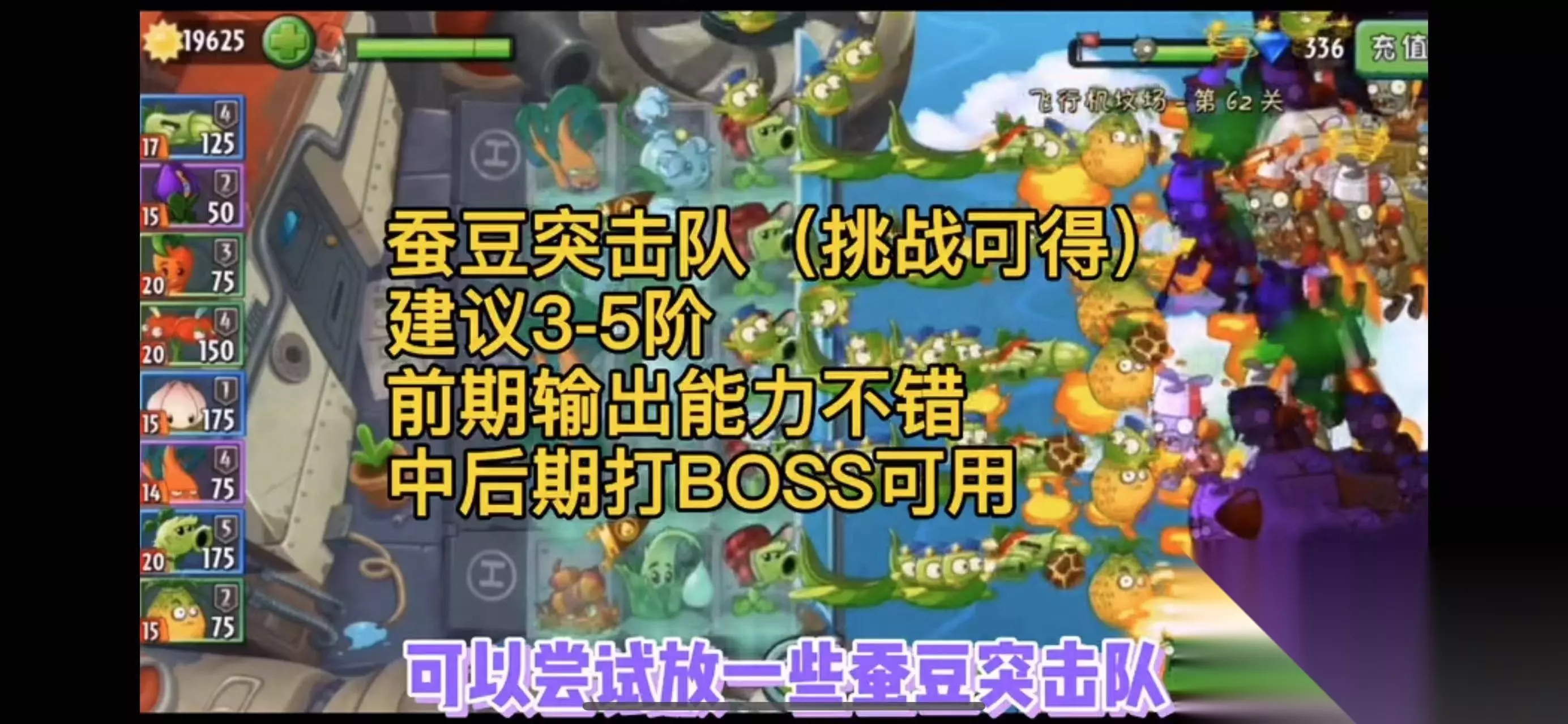 3、在芦笋飞机和旋转芜菁后面可以尝试着放一些蚕豆突击队。当然如果你有条件的话,也可以通过无土栽培放置一些陆地植物。