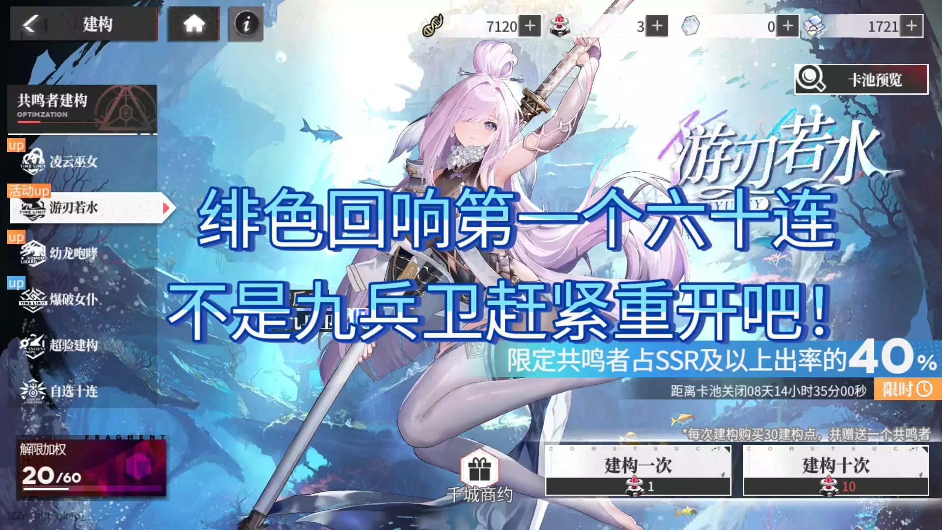 九兵卫吃大保底了,这期视频来的很慢,没有资源抽毕业武器了。 九兵卫和环已经是30级好感度。 说实话打了把测试看上去一星感觉没多大用,真爱党随缘吧。还以为东曦队能…
